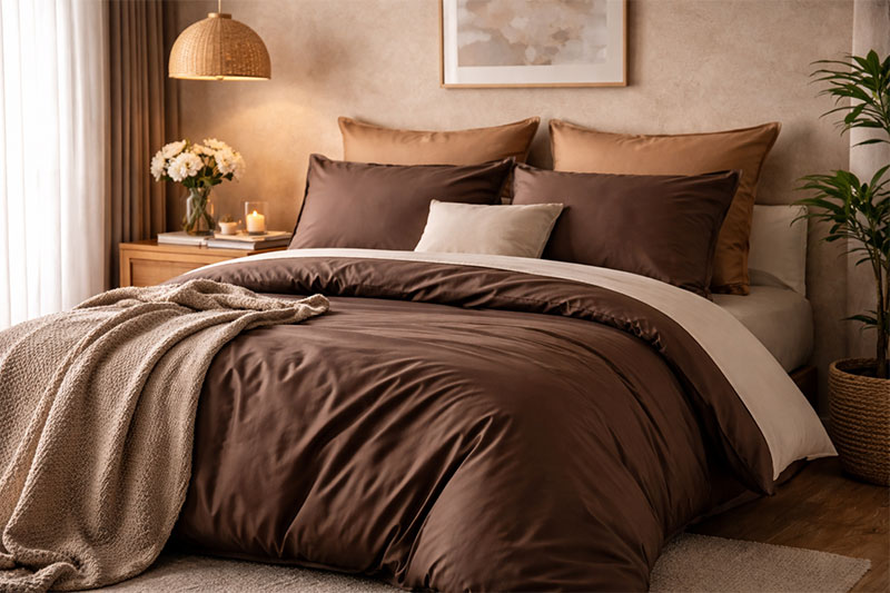 Коричневое постельное белье — модный тренд 2026 года, который сделает спальню уютной и эффектной.