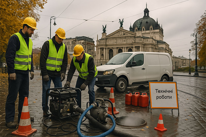 Бригади (усього 50 команд по 3–4 людини) ідуть від центру до Сихова та Личакова. Вони занурюють насоси на глибину до 8 м і перевіряють, чи витримають відключення живлення до 72 годин на резерві.