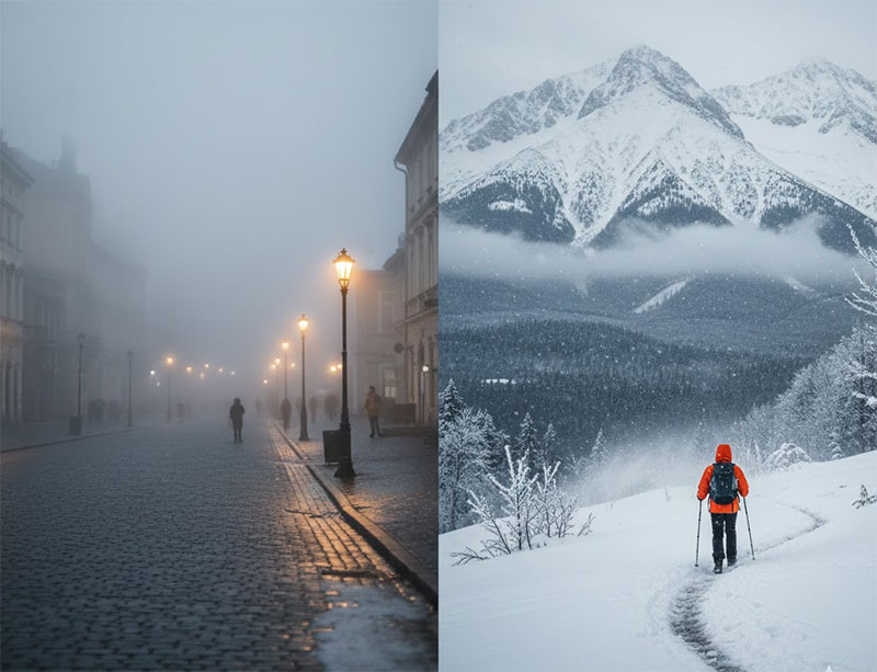 Наступний тиждень у Львові та по всьому Заходу пройде під знаком типового грудневого перепаду настроїв. То небо затягнеться щільними хмарами, то зранку повільно сповзе туман, залишаючи після себе холодну вологу. Температура вдень коливатиметься від 0°C до +5°C, а ночами повзтиме до легких мінусів. Погода не надто сувора, але точно не з тих, що дозволяє виходити без шапки.