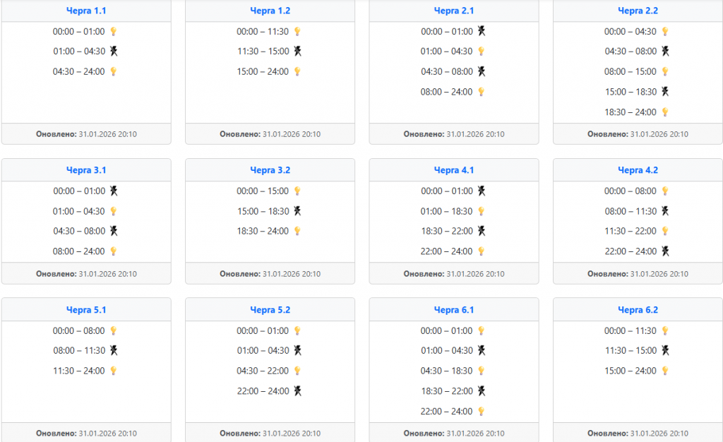 На Волині найзручніше шукати графік через сайт Волиньобленерго: обираєте дату (1 лютого), знаходите свій населений пункт і адресу, після цього бачите чергу та години. Якщо в таблиці щось «переїхало», зробіть просту річ — оновіть сторінку та звірте підчергу ще раз: інколи зміни вносяться оперативно.