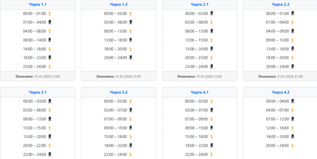 Зайдіть на офіційний сайт вашого обленерго, відкрийте сервіс графіків/відключень і знайдіть свою адресу (населений пункт, вулицю, будинок або особовий рахунок — залежно від області). Після визначення підчерги звірте години відключень у графіку на дату 1 лютого, а за потреби оновіть сторінку, щоб побачити актуальні дані.