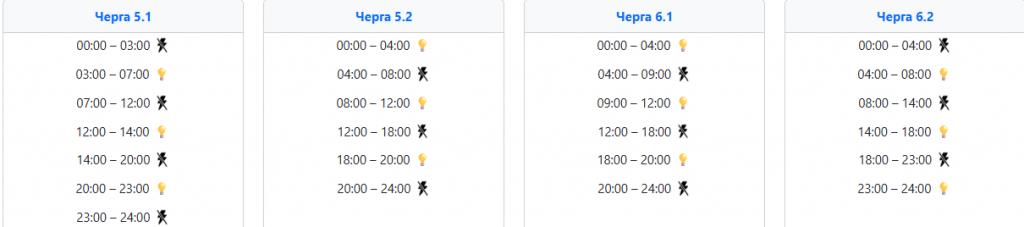 Графіки погодинних відключень зазвичай поділені на 6 черг, а кожна черга — на дві підчерги (наприклад, 1.1 і 1.2). Черга — це не просто «район», а технічна група споживачів. Іноді дві сусідні вулиці можуть бути в різних підчергах, тому часи відключень теж відрізняються. Щоб не ловити паніку, не орієнтуйтесь на скріни з чатів — краще раз перевірити адресу в офіційному сервісі.