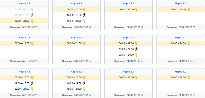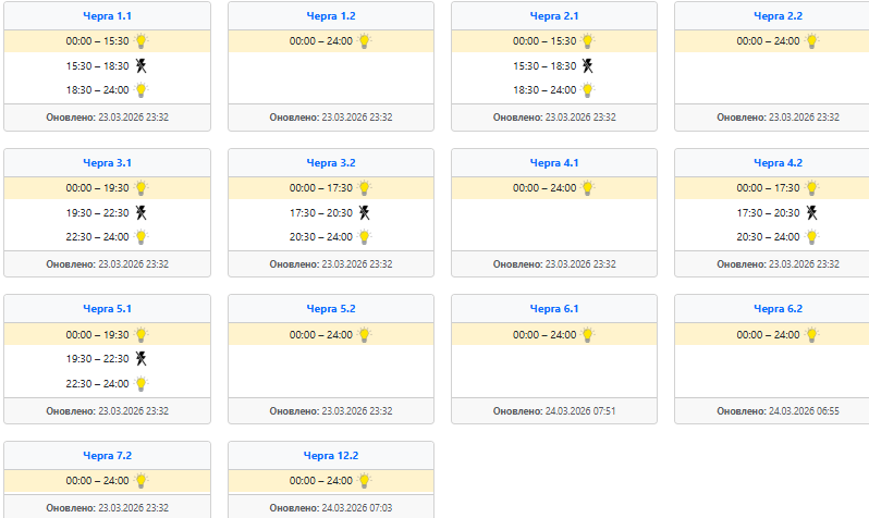 Найкраща тактика на 24 березня проста: спочатку перевірити адресу на сайті свого обленерго, потім звірити чергу, а якщо сервіс не дає повної відповіді — перейти в офіційний Telegram або Viber-бот. У більшості областей саме ці канали зараз працюють швидше за випадкові переслані картинки, а деякі компанії прямо пишуть, що ситуація може коригуватися протягом доби.