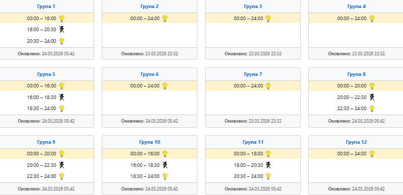 У Чернівецькій області «Чернівціобленерго» дає доступ до офіційної сторінки графіка погодинних відключень, а також до окремого розділу з інформацією про знеструмлення. Крім того, у публічному Telegram-потоці 23 березня поширювався орієнтовний графік заживлення на цю дату з нагадуванням ощадливо споживати електроенергію у години пікового навантаження. Для Чернівців і області це означає, що масові вимкнення не завжди оголошують заздалегідь на кілька днів, тому перевірка офіційного графіка саме в день 24 березня буде критично важливою.