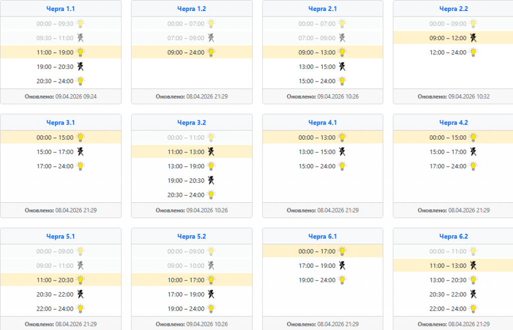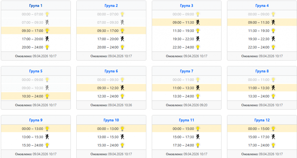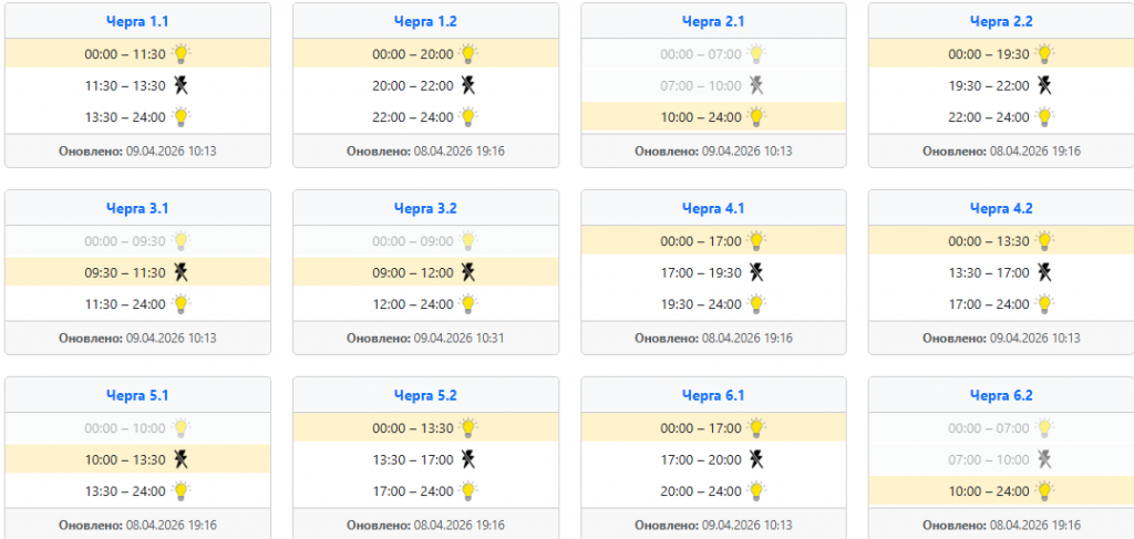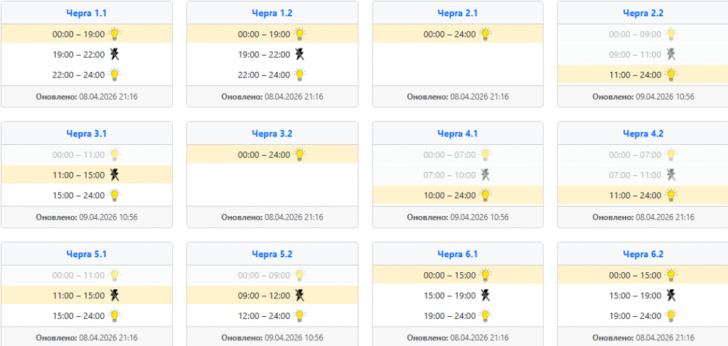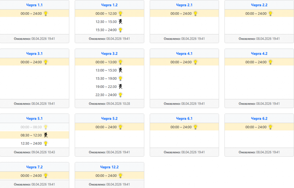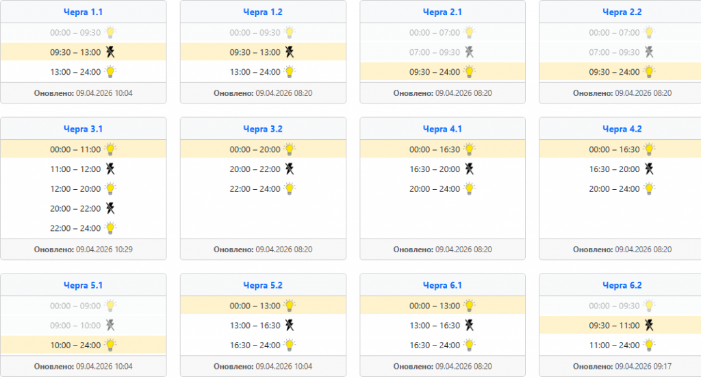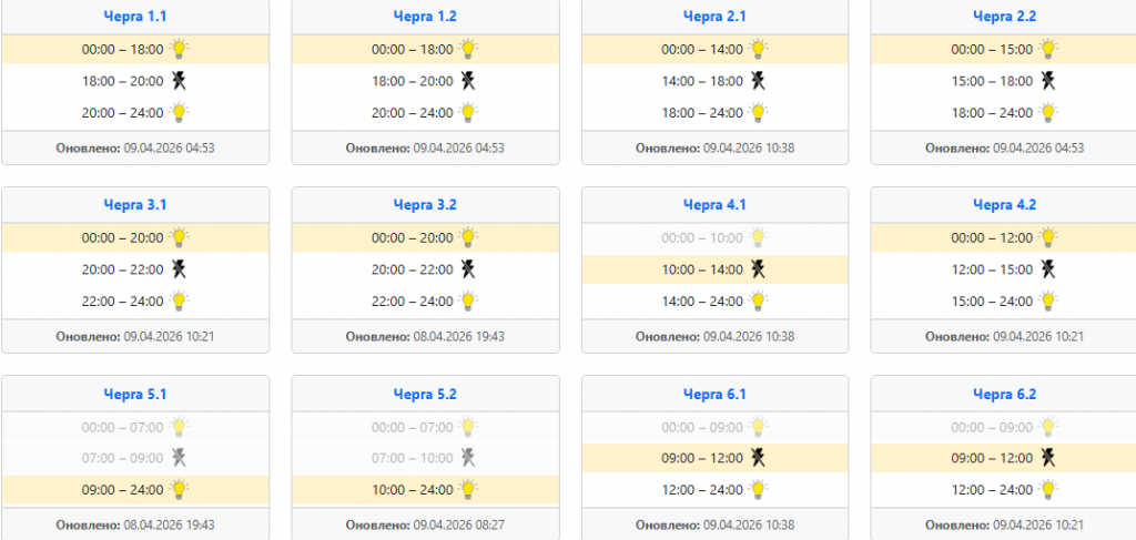 Найзручніше діяти так: спочатку відкрити офіційний сервіс своєї області, потім знайти населений пункт, вулицю або номер особового рахунку, а вже після цього дивитися підчергу та часовий проміжок. Це особливо актуально сьогодні, 9 квітня, коли оператори кілька разів оновлювали інформацію впродовж дня, а отже ранковий графік не завжди збігається з денним або вечірнім.